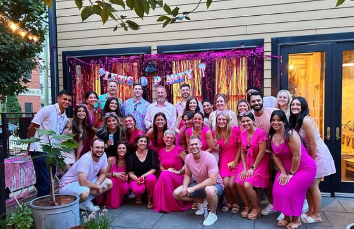 - Come On Barbie, Let’s Go Party: When Barbie first went viral, we couldn’t help but host the ultimate Barbie bash. We transformed one of our favorite Hoboken hot spots into a Barbie dreamland, complete with pink balloons, glitter, and a life-sized “Barbie pool” where everyone could grab their favorite beverage. And did we mention we actually closed the office to watch the Barbie movie? Needless to say, it was a pink-filled paradise!